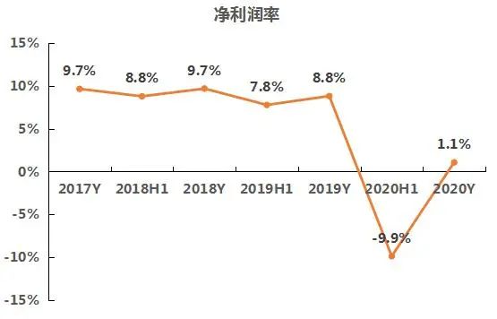 收入增幅的下滑,也是成本占比上升的原因之一,进一步挤压了海底捞的净利润。2020年,海底捞的净利润率由往年9%左右的水平急剧下降至1.1%,较2020年上半年-9.9%的净利润率有所提升,但跟往年相比,净利润率较不理想。