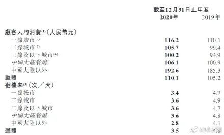 面对业绩压力,海底捞的涨价也在“悄悄进行”,财报显示,海底捞2020年人均消费达到110元,高于2019年的105.2元。