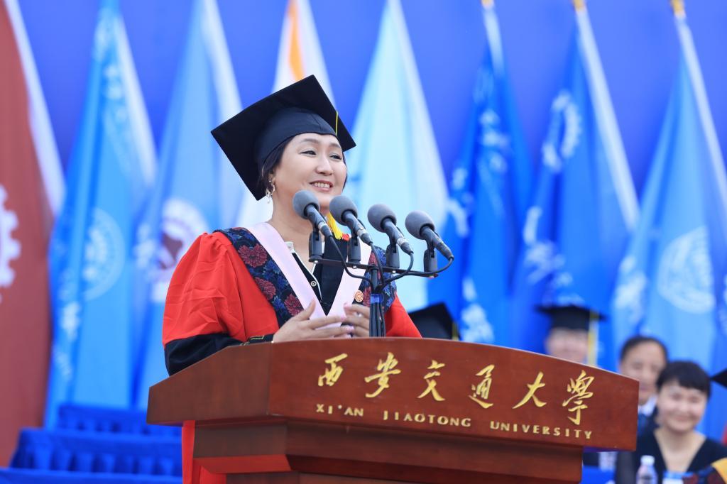 来自哈萨克斯坦的外籍教师代表、法学院外籍教授索菲亚老师见证了中哈两国之间在“一带一路”倡议下不断深化战略伙伴关系,亲历了西安交大首倡发起的“丝绸之路大学联盟”建设。她说,时光荏苒,请同学们珍惜每分每秒,以坚定的步伐和清晰的规划,共同谱写属于你们的辉煌未来篇章。