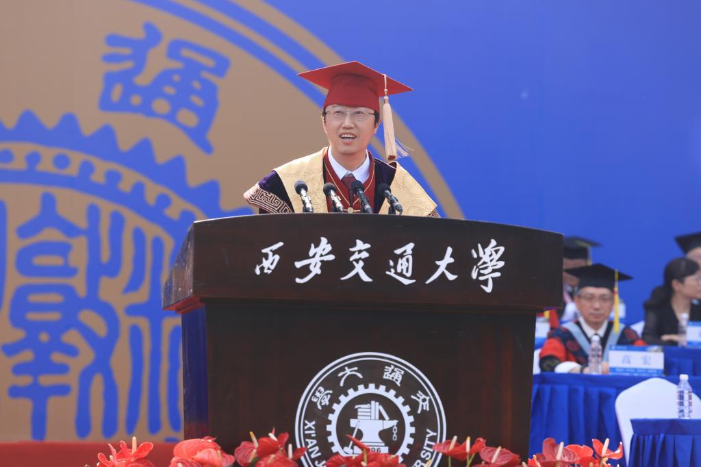 教师代表,经金学院教授、博士生导师,国家级青年人才李江龙表示,“在掌握知识和勇气的同时,要做一个仁慈的人,始终怀有对弱者的关怀、对社会的温情、对文明的敬意。”他希望同学们能继续传承弘扬西迁精神,铭记交大人的使命与荣光。