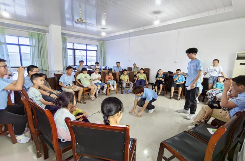 在德阳市罗江区魁星阁社区、蟠龙社区和鄢家镇,来自该校教育学院、经济管理学院和智能制造与车辆工程学院的社会实践团队走进儿童夏令营,为小朋友们带来一堂“筑梦童年路 青春笑绘温情缘”的思政课。小朋友们围坐一堂,聚精会神地聆听团队成员生动有趣地讲解革命英雄的英勇事迹。同时,志愿者们为小朋友们开设了绘画小课堂。在志愿者的指导下,小朋友们发挥想象,用画笔描绘出心中的花朵,表达对祖国母亲纯真的爱。