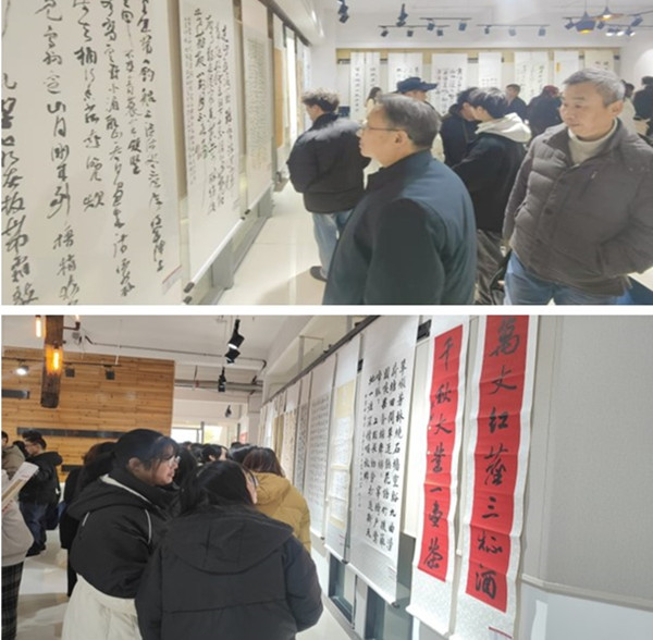 安徽省高等学校书法家协会副主席汪德平、杜继双、岳兴林、孙永玉、陶合民、陈殿林、汪军、王大进、张春生、张云,安徽省高等学校书法家协会副秘书长蔡小冬、乔龙泉,安徽省高校书协常务理事朱吉玉、刘忠义等领导、专家、教授,铜陵学院党委宣传部(统战部)副部长杨昀,文学与艺术传媒学院党委副书记宋岚、副院长姚小烈及师生参加了开展仪式。仪式结束后,大家一同参观了书法作品展。