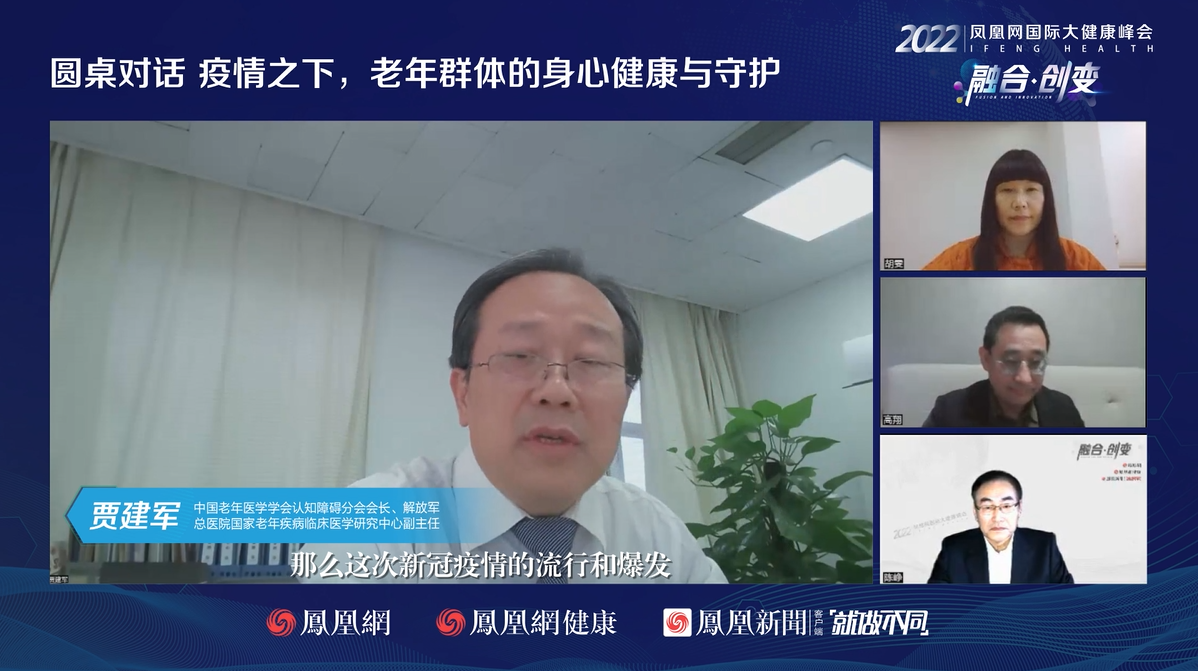 12月27日,由凤凰网主办、凤凰网健康承办的2022国际大健康峰会线上举办。中国老年医学学会认知障碍分会会长、解放军总医院国家老年疾病临床医学研究中心副主任贾建军,中国老年医学学会副会长、四川大学华西医院临床营养科主任胡雯,复旦大学特聘教授、流行病学者、美国营养学会流行病分会前主席高翔担任圆桌论坛嘉宾,与主持人、中国老年医学学会副会长兼法定代表人、北京老年医院原院长陈峥就《疫情之下,老年群体的身心健康与守护》展开讨论与分享。
