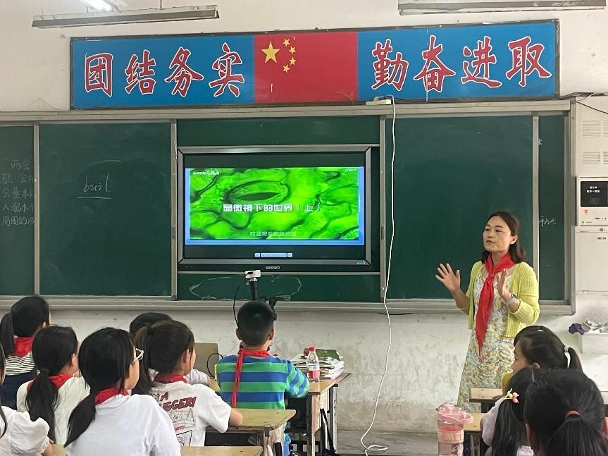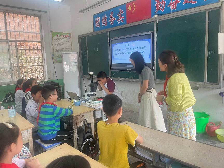 科研学报分测中心党支部书记张秋慧为孩子们带来了一堂别开生面的科普课堂——通过显微镜认识世界。在课堂上,张秋慧用诙谐幽默的语言,用一个个生动的微观世界视频打开孩子们探索微观世界的好奇心,激发了孩子们探索未知世界的激情,树立了孩子们科研强国的志向。