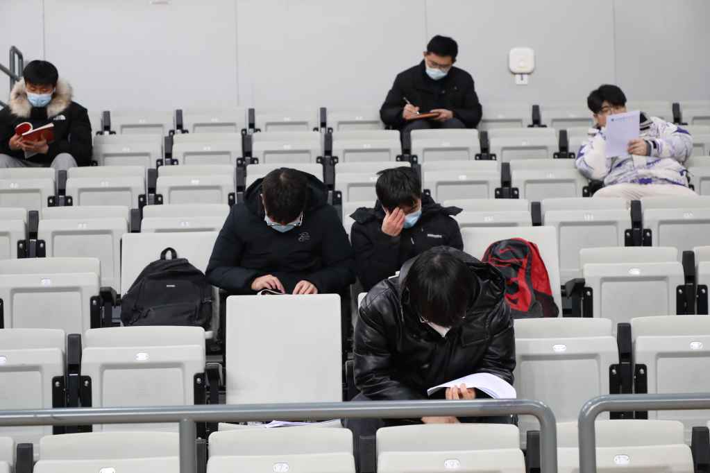 据了解,体育部提前将馆内所有看台伸缩座椅放置到位,开足馆内暖气,全馆进行消杀,24小时开启排风系统,并贴心的为考生们准备了热水等。