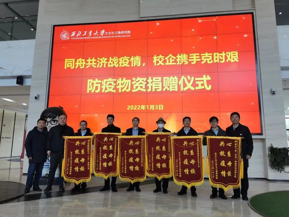 1月3日西工大太仓疫情防控领导小组在研究院举行防疫物资捐赠仪式,仪式后防疫物资启程发往西安