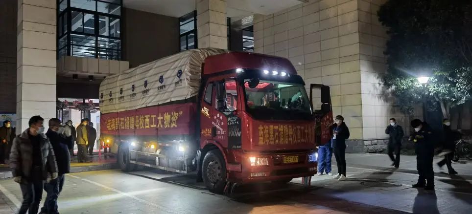 罗贺斌校友所在公司捐赠物资于1月4号凌晨2点从浙江金华出发,当天晚上11点左右送达学校
