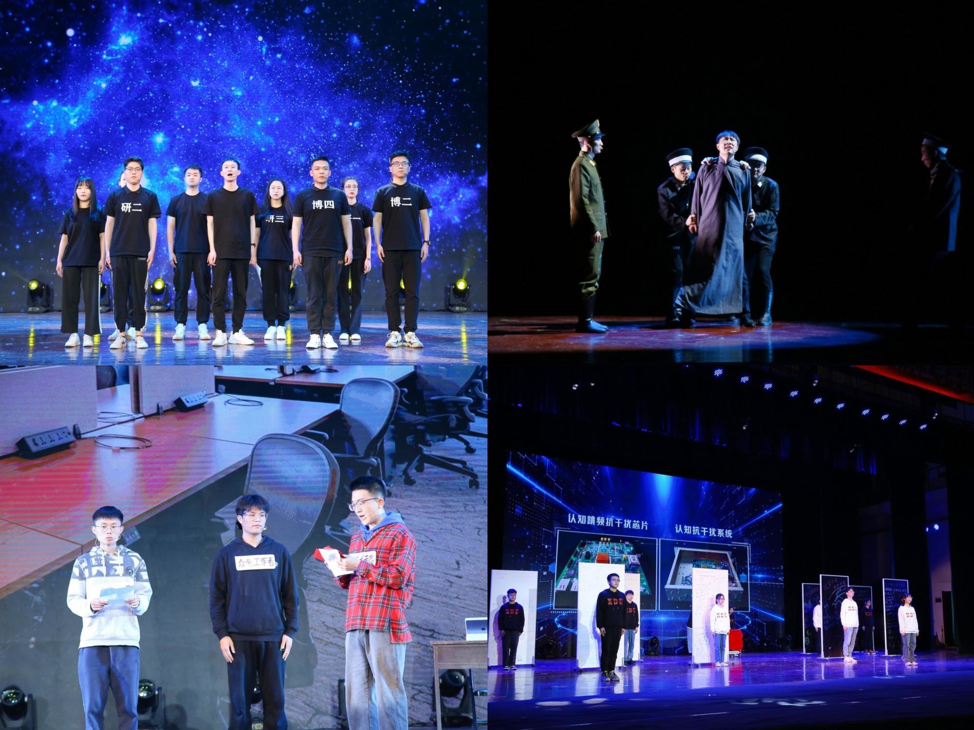 “胜利永远属于中国共产党!胜利永远属于中国人民!”电子工程学院电磁超材料创新团队以构思巧妙的穿越剧,让“用生命捍卫革命事业”的李白烈士穿越到当代,感受国家繁荣强盛,科技蓬勃发展,从而巧妙地展现了团队近年来的技术进步和研究成果。引人入胜的剧情、逼真的舞台效果、精彩的表演,赢得了在场师生热烈的掌声。