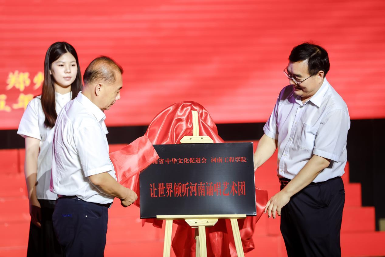 张立勇和刘超共同为让世界倾听河南诵唱艺术团及靖宇诵唱艺术团揭牌。