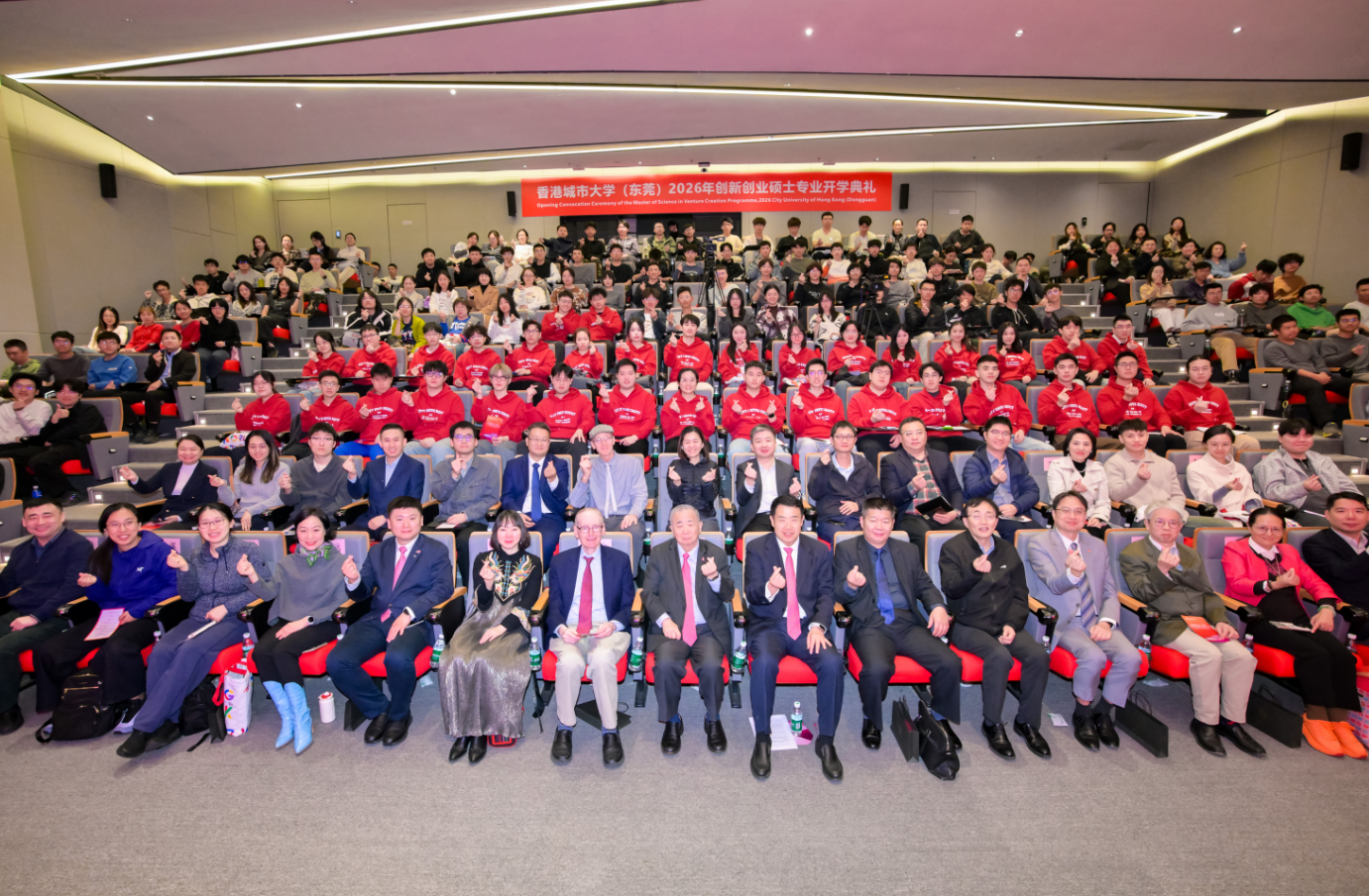 出席典礼的嘉宾还有港城大(东莞)副校长(学术)、港城大副校长(常务)李娟教授,港城大协理学务副校长张泽松教授,港城大协理副校长(内地产业)吴振富教授,以及本地政企代表、大学领导、教师代表与首届创新创业硕士专业全体学生。