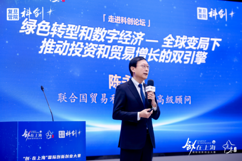 全球视野先导:中国碳中和集团董事局主席、联合国贸易和发展组织高级顾问陈永岚,围绕《绿色转型和数字经济:全球变局下推动投资和贸易增长的双引擎》的主题作主旨演讲。他从全球新变局下的资本流动和投资结构的变化入手,“以AI为代表的数字经济与绿色转型是贯穿所有产业的两个‘万金油、双引擎’,必须全面拥抱并融入战略。”他强调中国企业应在AI应用与低碳发展中把握先机,将宏观趋势转化为企业战略,通过技术融合与政策响应构建可持续竞争力,在全球变局中实现韧性成长。