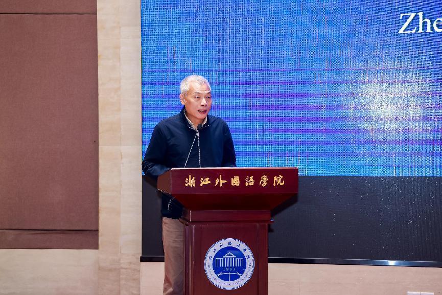 宣勇致欢迎词。他指出,自省政府与北京大学签署支持建设浙江外国语学院合作协议以来,两校持续深化务实合作。学校在加快推进“外语名校”建设进程中,积极打造具有浙外辨识度的国际传播特色品牌。本次论坛作为学校迎接70周年校庆百场系列学术活动的开端,既为省校合作搭建了又一个优质平台,也为浙外服务浙江开放强省建设和国际传播能力提升提供了强有力的支撑。