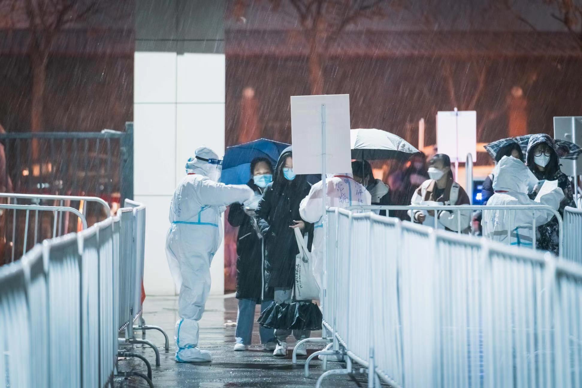 在纷纷扬扬雪中,工作人员凌晨到岗,做好全面消杀和防护,迎接考生的到来。亮码、测温,出示48小时核酸阴性证明、准考证和身份证,考生通过简单操作即可顺利进入考区。抵达所在考务楼后,进行人脸识别校验和二次测温。
