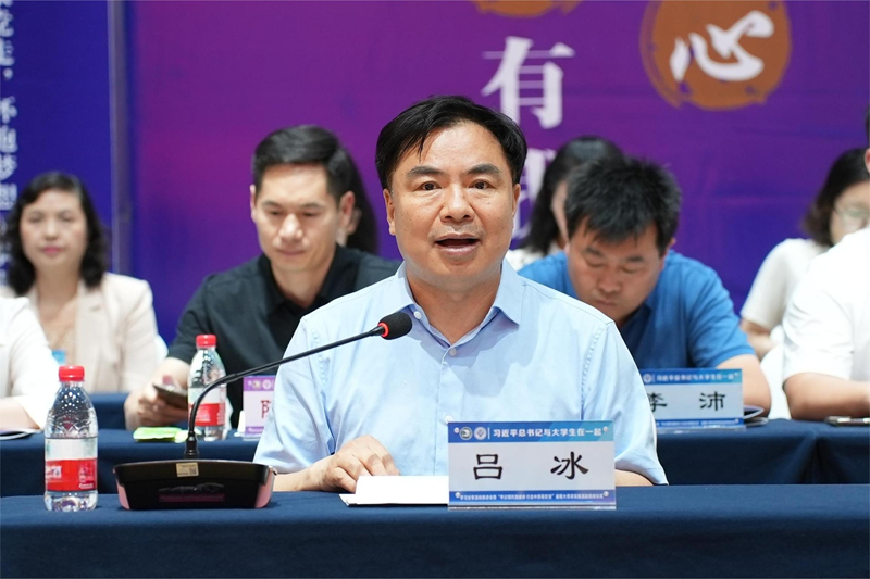 会上,尹洪斌为暑期大思政实践活动代表高校的分队师生代表授旗,参会人员共同观看“习近平总书记与大学生在一起”学习分享活动视频,部分高校师生代表作交流发言。
