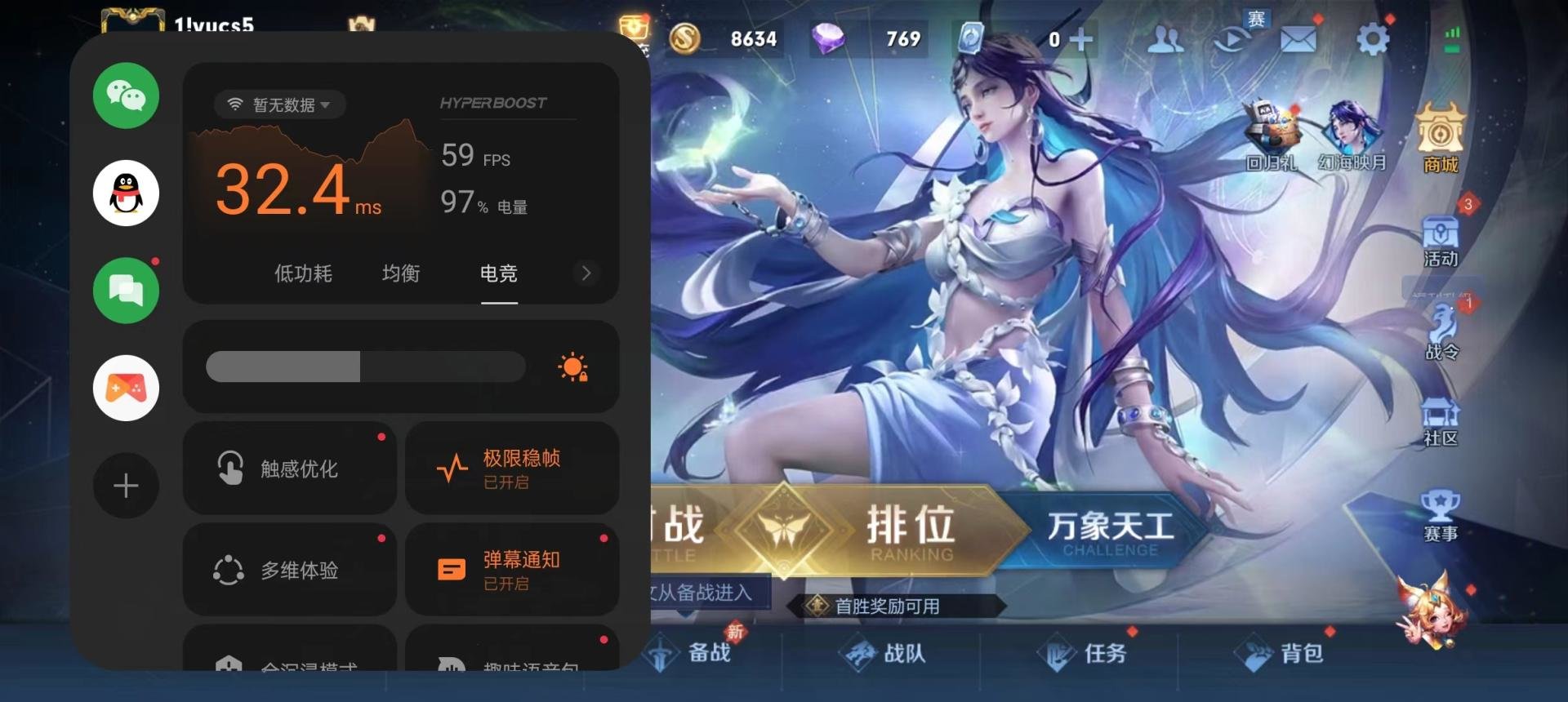 三大件拉满之后肯定是要开一局的,然后游戏体验方面一加ACE Pro却是给了我不小的惊喜,首先是Color OS12的给力,它支持返回桌面后,桌面会有时间提醒功能,在开局之后,手机桌面会显示复活时间,这让我挂的时候就能回到桌面处理别的事情了,有16G大运存不会杀后台,有时间提醒也不耽误我重新进入游戏影响游戏体验,然后就是王者人物选择的过程中,居然会有人物推荐和搭档和克制的推荐,这对于游戏新手来说可真的是利器了,然后游戏工具箱还有极限稳侦,触感优化,多维体验,弹幕通知等等功能,真的是个功能满满的游戏工具箱。