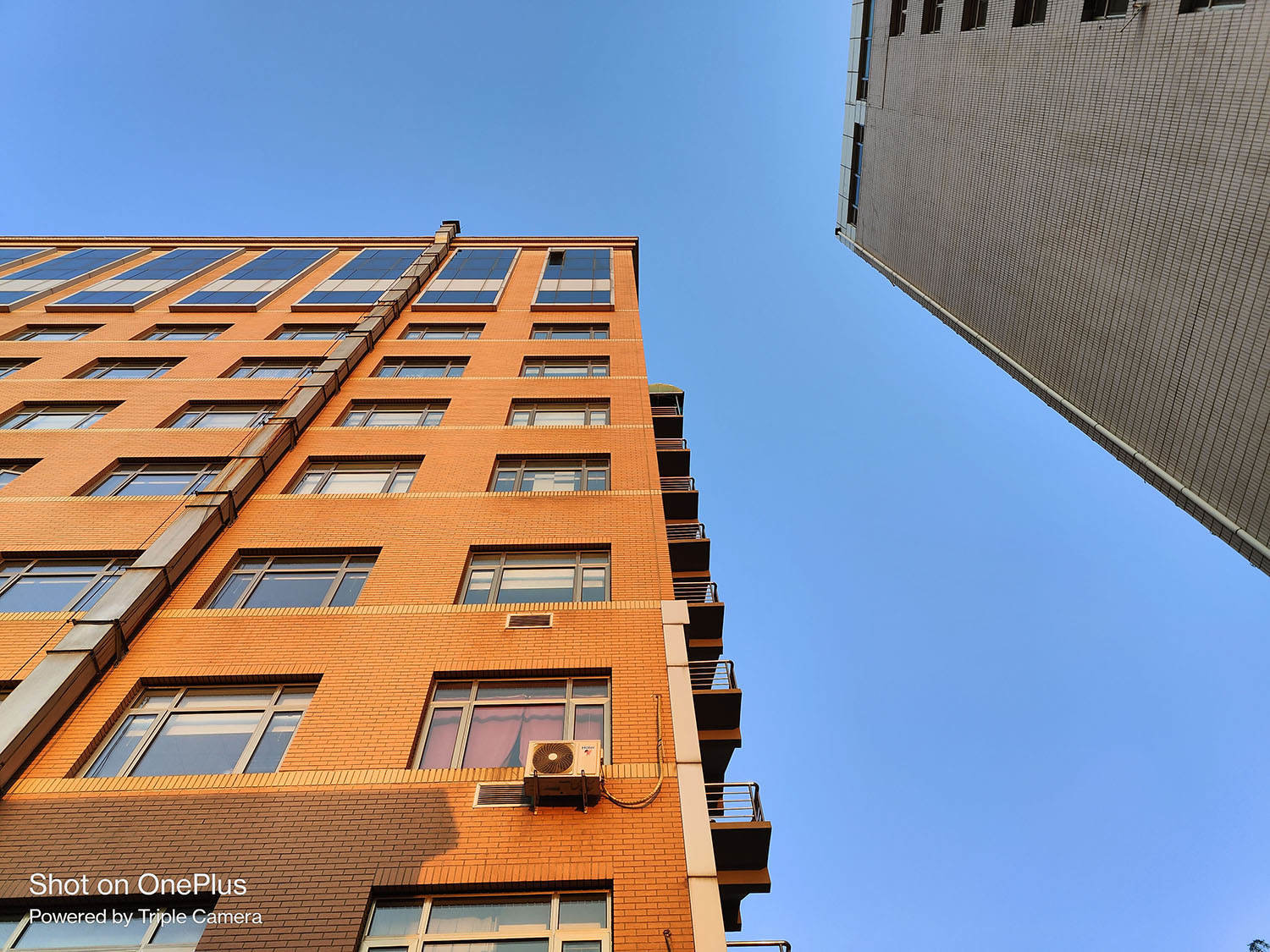 先抬头随手拍摄个楼房和大树,一加Ace Pro拍摄物体这色彩方面还真的是没得说,成像的照片会对拍摄物体进行一定程度的调整,比如楼房墙面为淡橙色,AI调整会增加色彩度,而绿叶颜色会也会调整较为干净,整体显示效果屏幕显示效果类似,偏向于生动类型。