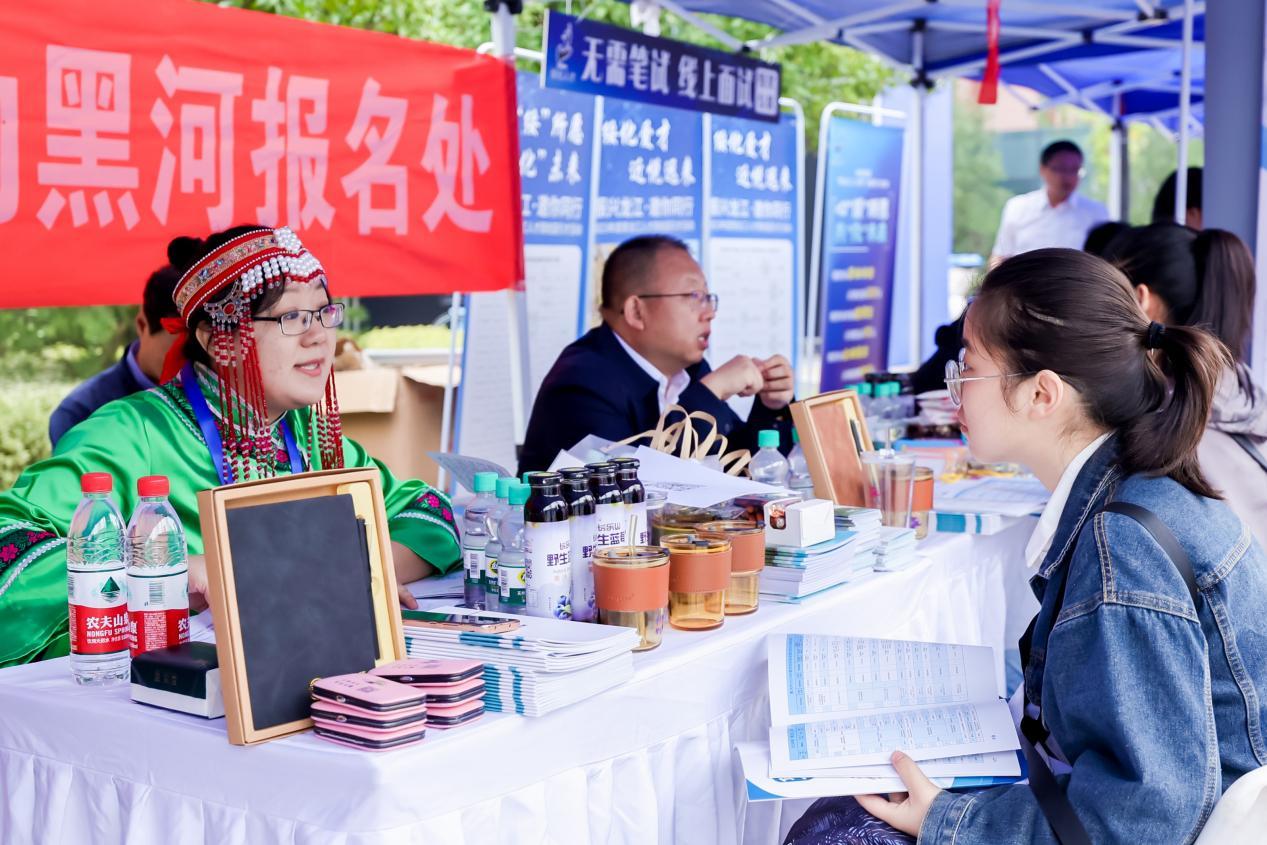 国家发展靠人才,民族振兴靠人才。河南、黑龙江、贵州等省市积极落实新时代人才强国战略,组织省市企业集体参会,延揽高校优秀毕业生到当地施展才华。除了推出人才政策的实招外,黑龙江省各地市组织和人社部门还在招聘会现场出新招。民族服饰、各类特产、活泼玩偶,热情的东北朋友新颖的招聘方式吸引了大批学生们前来互动了解,并开启了上午收简历、下午面试、第二天发录用通知的倍速“抢人”模式。