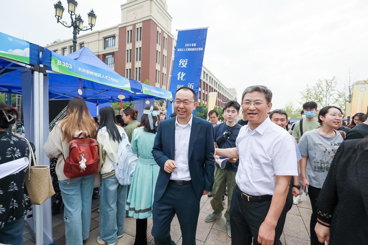 参加完河南省人才推介活动后,单智伟助理来到黑龙江组团展区,与黑龙江省人社厅常务副厅长何衍春一同巡场指导,了解龙江大地的人才需求,走访了选调生、事业单位和企业展区。在就创中心郑旭红主任的陪同下,单智伟助理先后走访了中国科学院近代物理研究院等研究机构、中建八局等重点单位、苏州英维克温控技术有限公司等校友企业。他对用人单位的到来以及其多年来对我校学子的厚爱表示感谢,就进一步深化校企合作等内容与企业代表进行交流。在“求职加油站”,他对职业规划师的热心付出表示感谢,鼓励同学们主动出击,积极应聘。