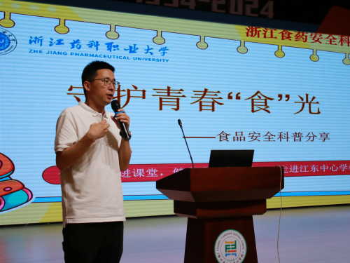 2025年5月23日,浙江药科职业大学浙江食药安全科普基地的药商学院科普团队来到宁波市鄞州区江东中心学校,为全校380多名师生带来了一场精彩纷呈的食品安全科普知识讲座。本次活动以“食药安全进课堂,健康成长有保障”为主题,通过讲座形式提升青少年食品安全意识,让健康意识如春雨般浸润同学们的心。讲座围绕下面四个方面展开: