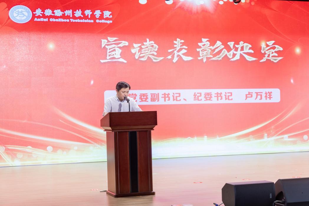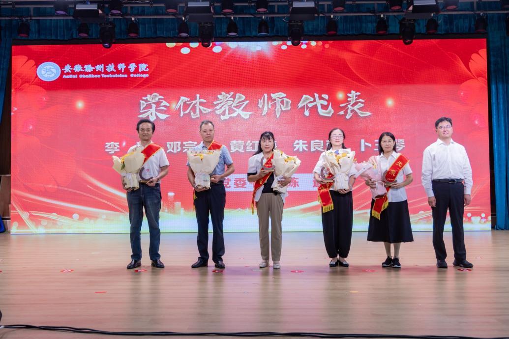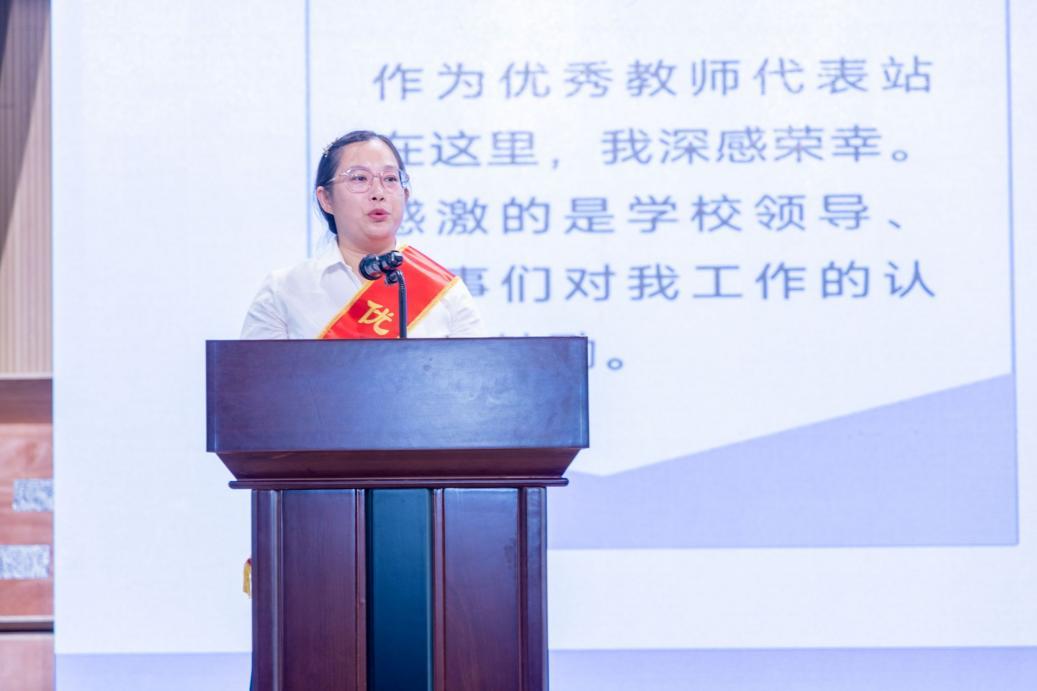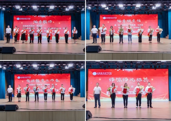 校党委副书记、纪委书记卢万祥宣读了学校表彰决定,一批批在教育教学、科研创新、师德师风建设等工作中表现突出的个人和集体依次登台领奖。随后,受表彰教师代表和荣休教师代表分别发言,分享了他们的教育心得和感悟,真挚的话语引发全场共鸣。