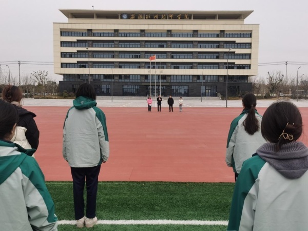 学生们排着整齐的队伍来到操场集合,国旗护卫队队员们昂首阔步、英姿飒爽。五星红旗在雄壮的国歌声中冉冉升起,迎风飘扬,全体师生庄严肃立,向国旗行注目礼,深怀对祖国的无限热爱和崇高敬意。