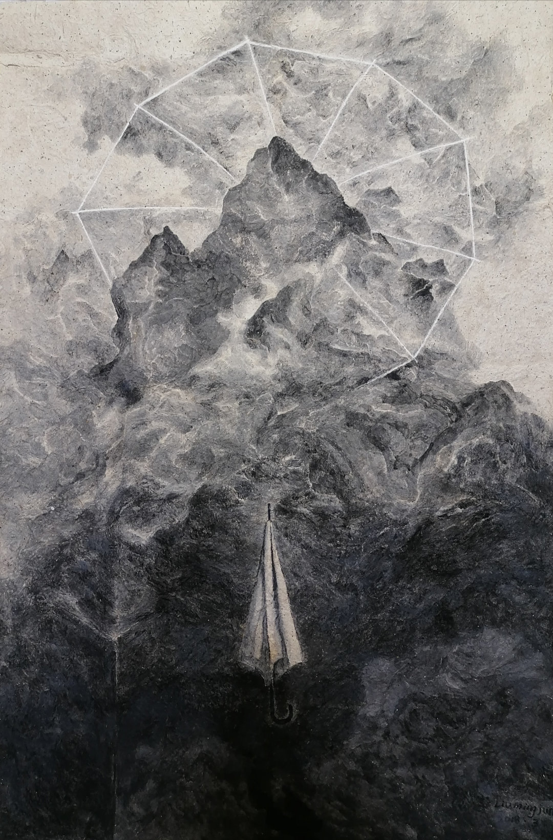 刘明俊 《虚境—山影5》 综合材料 手工纸,墨汁,丙烯 90×60cm 2020