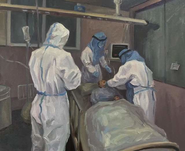 陈菲菲 《方舱时刻》 布面油画 80×100cm 2021