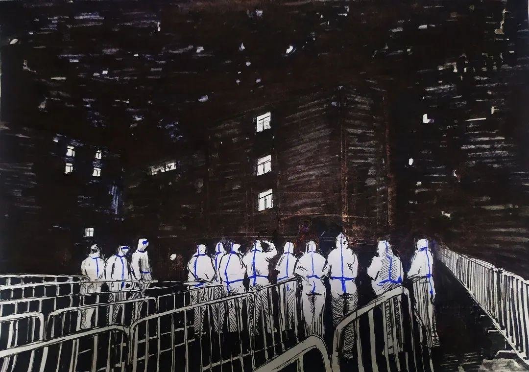 吴可华 《疫》 纸本综合 180×150cm 2020