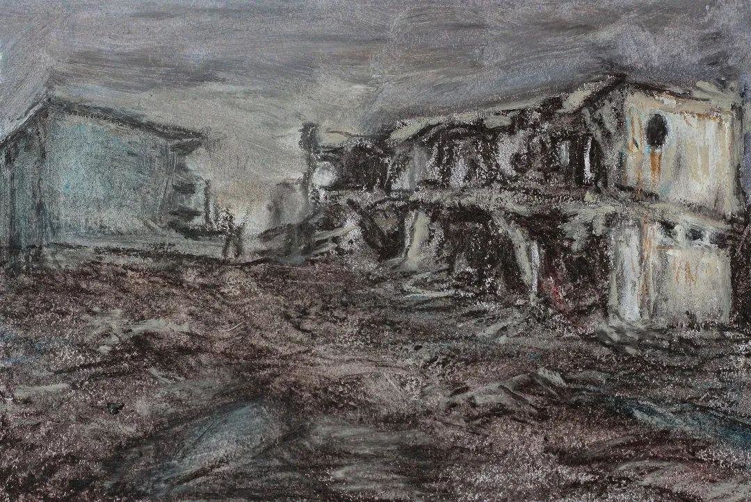 刘倩如 《城市之殇》 纸本油画棒 11×16cm 2022
