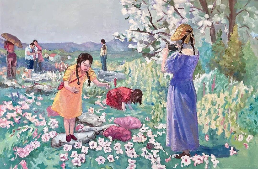 苏龙嘎 《粉色的爱情》 丙烯 90×130cm 2021