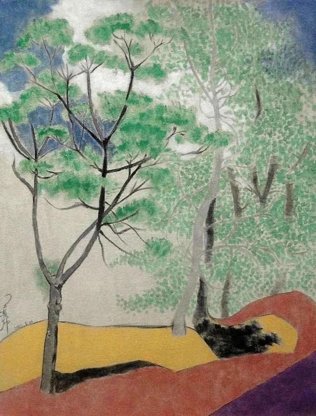王朝帅 《校园里的树丛》 岩彩坦培拉 60×45cm 2022