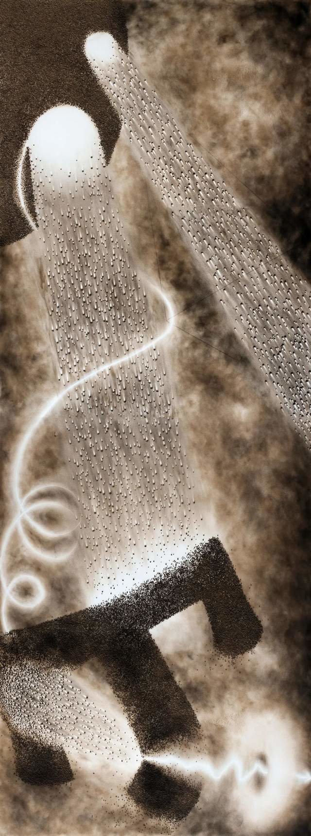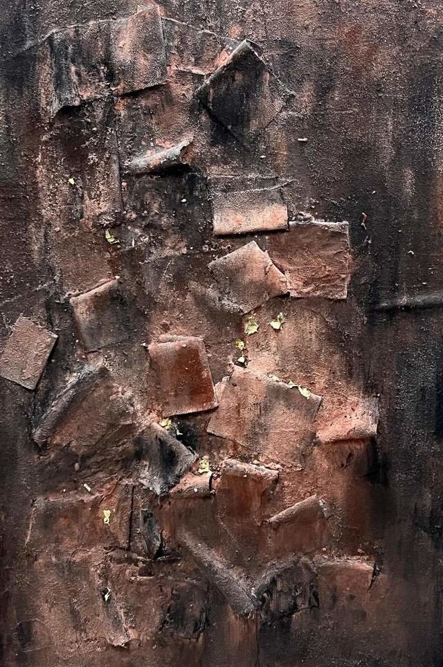 罗誉 《遗迹》 综合材料(钢钉、麦秆、泥土、油画颜料、金粉、胶水等) 100×150cm 2022