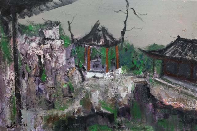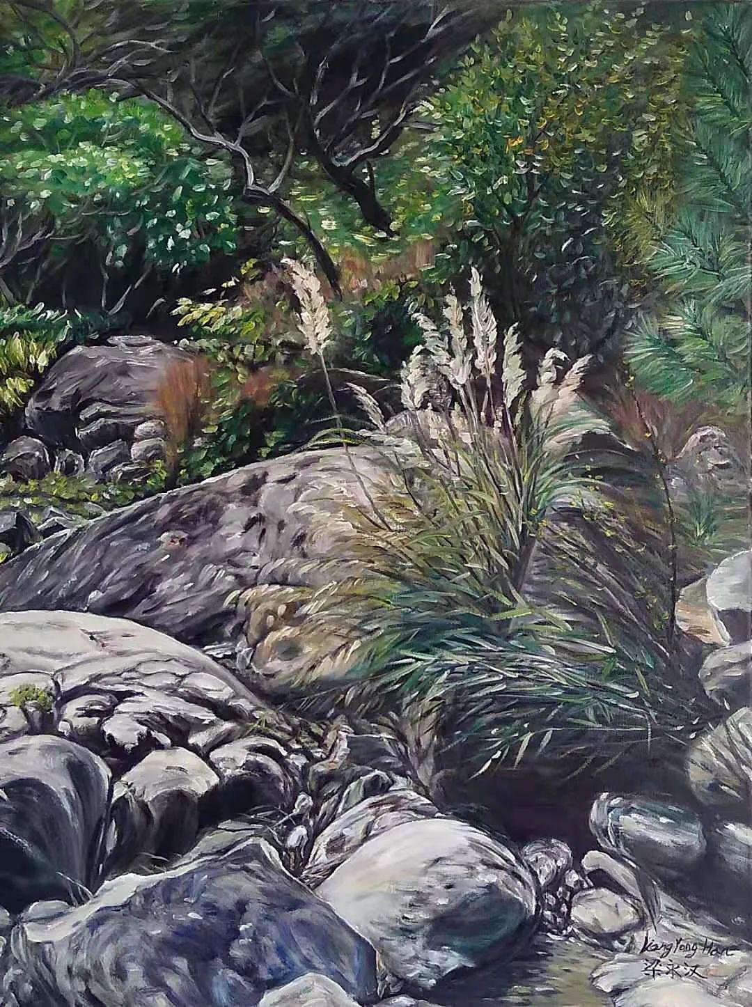 石建军 《山石池岸》 布面油画 60×90cm 2022