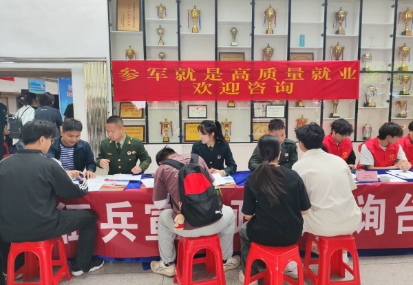 为激励广大有志青年踊跃报名参军报国,双选会现场还设置“征兵咨询处”,3名退役复学“老兵”在现场向同学们分享介绍大学生征兵入伍政策等。