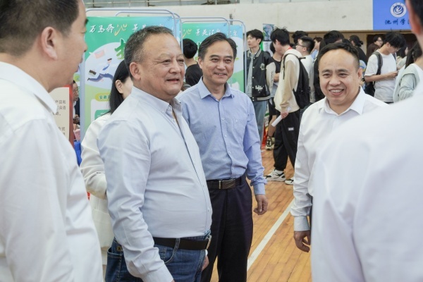 为全力做好学校毕业生就业服务工作,满足用人单位招才引智需求,促进毕业生高质量充分就业,5月10日,池州学院2025届毕业生春季校园大型双选会在校体育馆举行,校党委委员、副院长阳光宁,池州市委人才工作局、池州市人力资源和社会保障局、阜南县委县政府等单位领导亲临现场指导。