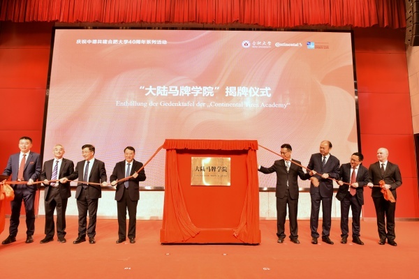 2025年正值中德共建合肥大学四十周年,也是合肥大学联合德国埃姆登/里尔应用科学大学与大陆马牌轮胎(中国)有限公司合作设立“大陆班”项目步入第十年的重要节点。10月22日,“大陆马牌学院”正式揭牌成立,标志着校企合作步入平台化共建、梯队化培养、产学研联动的新阶段。