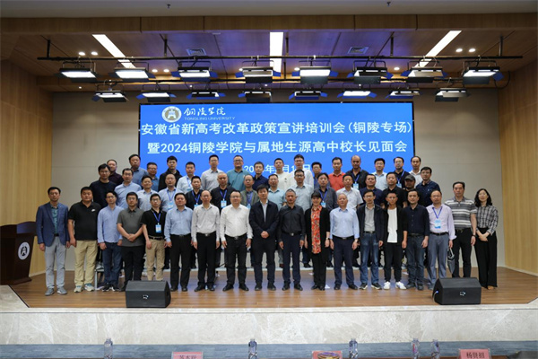 为助力安徽省高考综合改革平稳落地,进一步提高学校生源质量,近日,安徽省新高考改革政策宣讲培训会(铜陵专场)暨2024年铜陵学院与属地生源高中校长见面会在铜陵学院翠湖校区隆重举行。安徽省教育招生考试院院长沈滔,铜陵学院党委副书记、校长苏本跃,铜陵市教体局党委书记、局长杨贤招和局党委委员、总督学万方出席活动。会议由该校党委委员、副校长疏仁华主持。