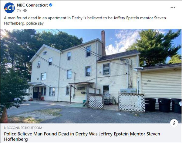 死者霍芬伯格因20世纪90年代通过塔楼金融公司设下庞氏骗局,骗取高达4.6亿美元被判入狱20年而为外界熟知。塔楼金融公司由他和美国前亿万富翁爱泼斯坦共同经营,后者2019年因一手发展“性侵岛”被捕,但被捕1个月后被发现在狱中“自杀身亡”。