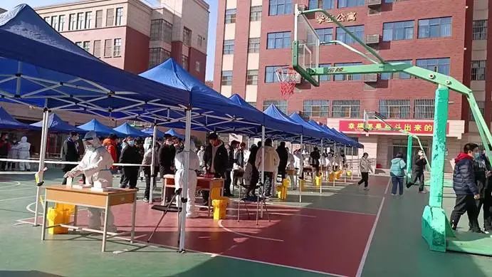 学校保卫处,处领导提前部署,靠前指挥,干部群众全体上岗,加班加点,分工负责。提前前往检测点布置现场,拉警戒线,贴一米间隔线标、等候区、教职工通道、学生通道、核验区、采样区等标识,协助校医院工作人员摆放好检测所需的各种医疗器械和仪器设备,186名职工全天户外值守,全力确保重点工作安全、平稳、有序进行。