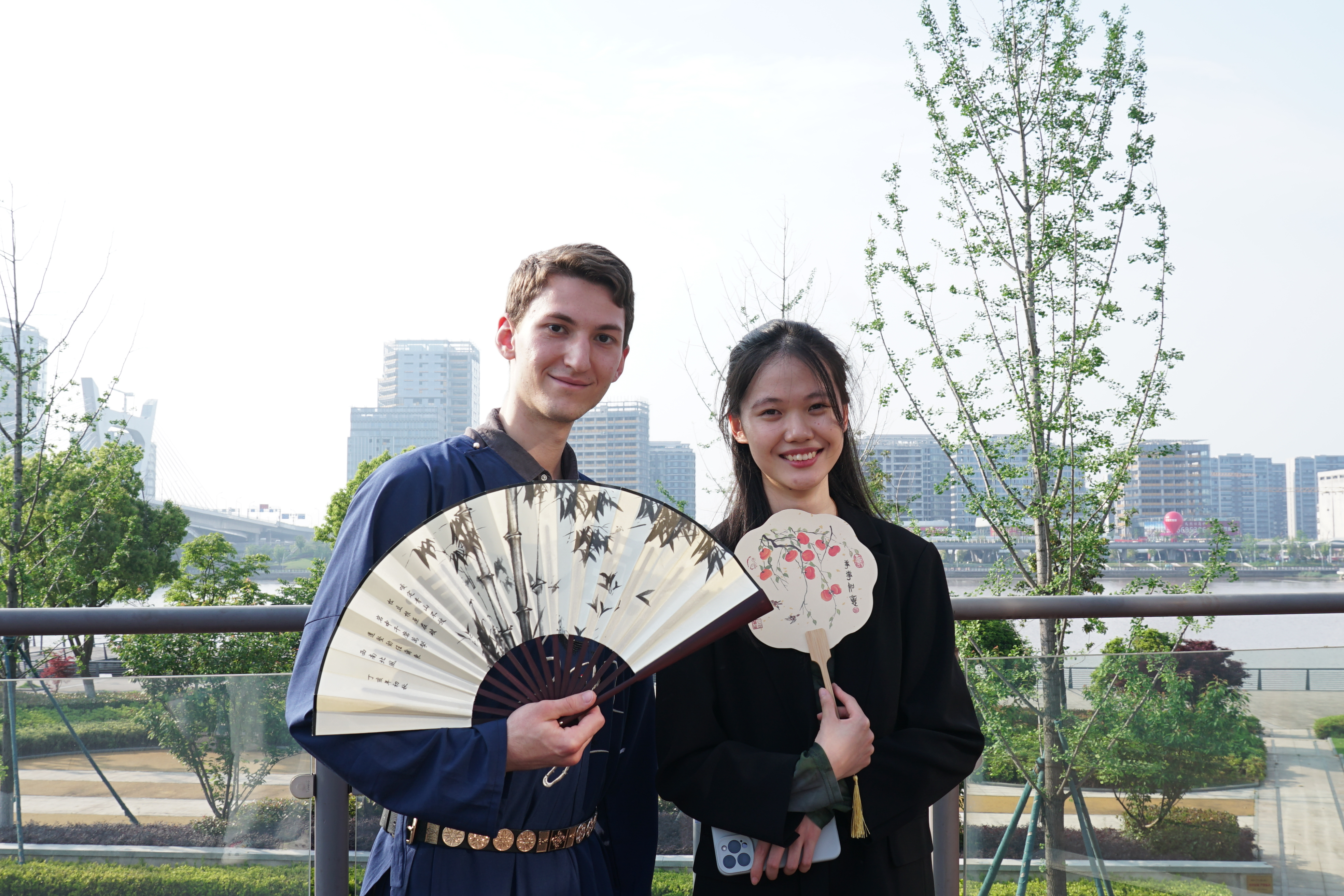 “这次宋韵书房的活动我觉得很有意义,为我们提供了很好的文化交流平台!我们向俄罗斯朋友们介绍汉服、点茶等中华文化。他们亲身体验了点茶,试穿了汉服,表现出对中国文化的喜欢。当然,他们也会介绍一些俄罗斯文化,这是一种相互的学习和交流。”同样来自浙江万里学院英语专业的杨百惠同学谈到。