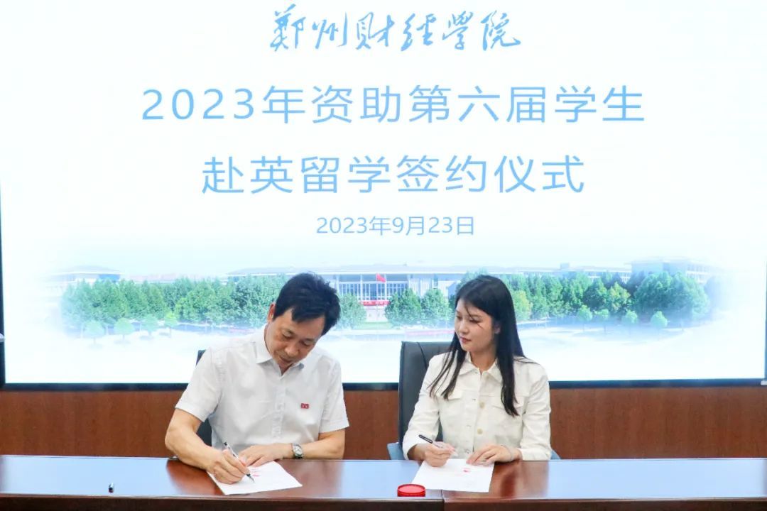 9月23日上午,郑州财经学院2023年资助学生赴英留学签约仪式在德正楼第二会议室举行。理事长牛钦民等校领导,8名即将赴英学生代表及国际处、教务处工作人员参加仪式。签约仪式由监事会副主席王艳珍主持。