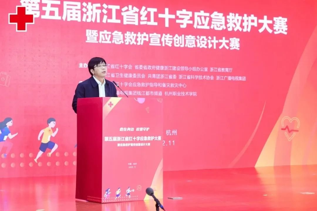 救在身边,校园守护。11月17日-19日,第五届浙江省红十字应急救护大赛暨应急救护宣传创意设计大赛决赛在杭州职业技术学院正式开赛。18日上午,浙江省红十字会党组成员、专职副会长黄元龙,杭州职业技术学院校长徐时清,浙江省红十字会应急救护指导和备灾救灾中心主任王芳,彩虹鱼康复护理学院直属党支部书记、副院长韩丹,教务处副处长许普乐等出席开幕式。