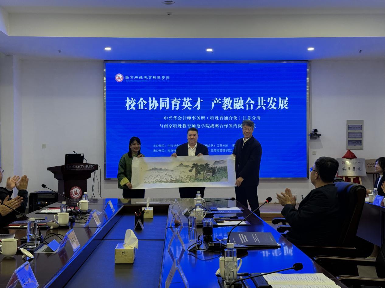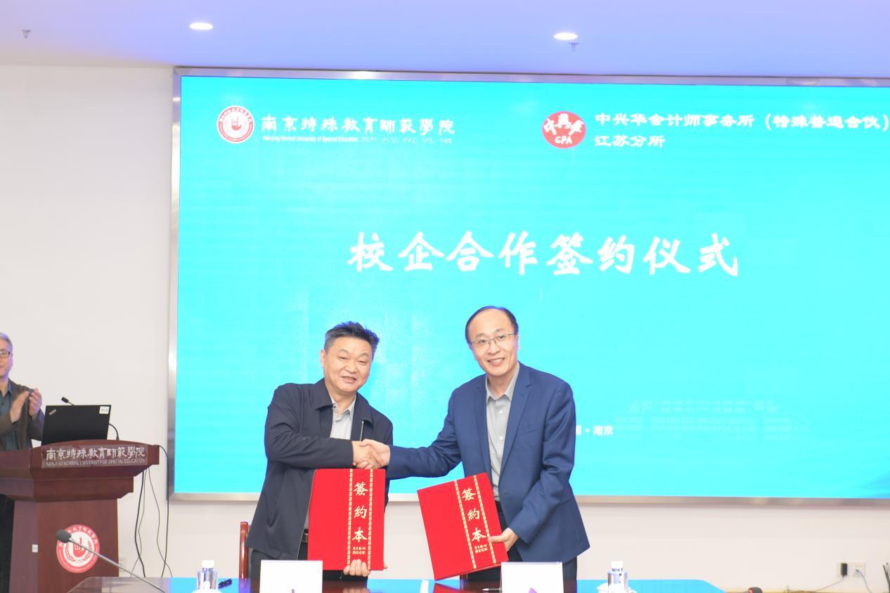 10月29日下午,南京特殊教育师范学院与中兴华会计师事务所(特殊普通合伙)江苏分所战略合作签约暨奖学金颁发仪式在南京特殊教育师范学院实验实训大楼201会议室成功举行。双方代表、管理学院师生齐聚一堂,共同见证校企协同育人的新征程。