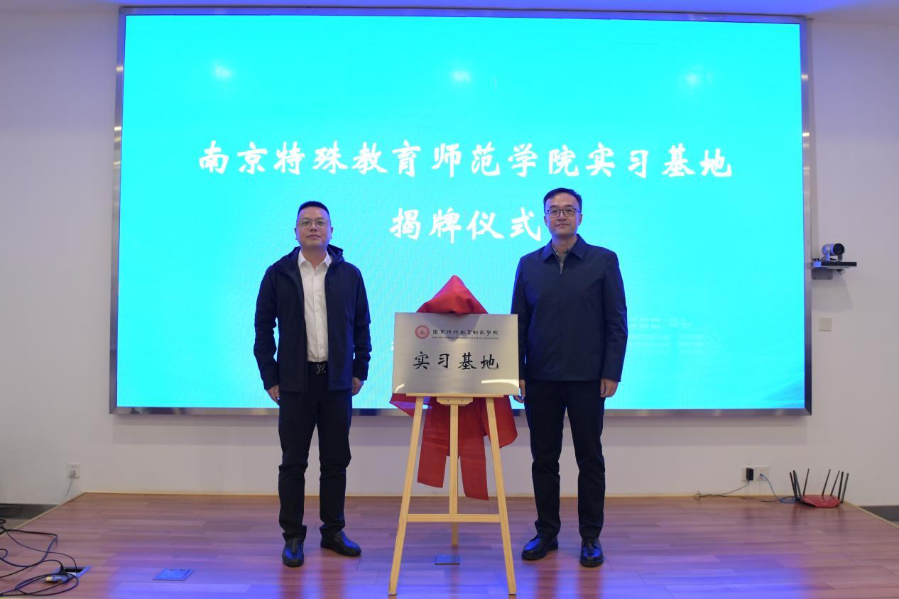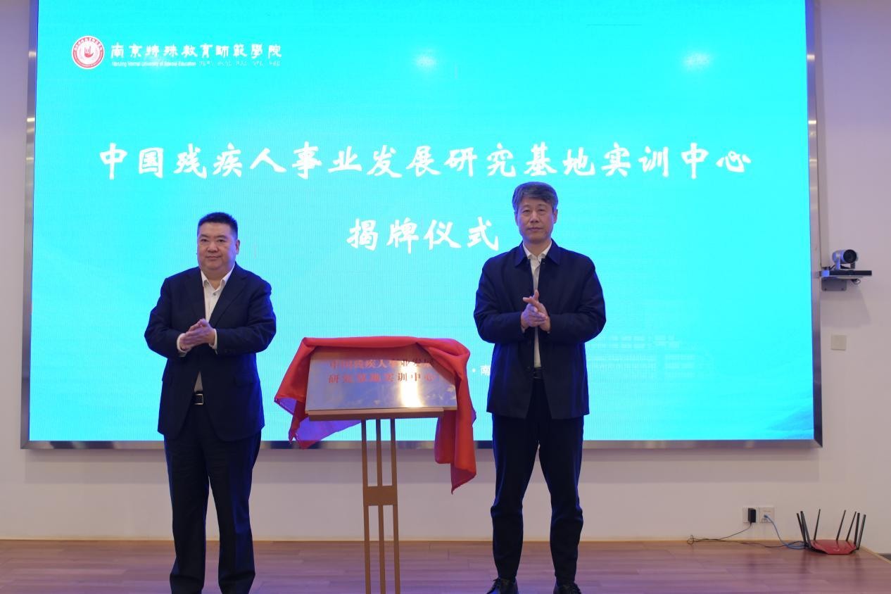 签约仪式上,“中国残疾人事业发展研究基地实训中心”与“南京特殊教育师范学院实习基地”正式揭牌。