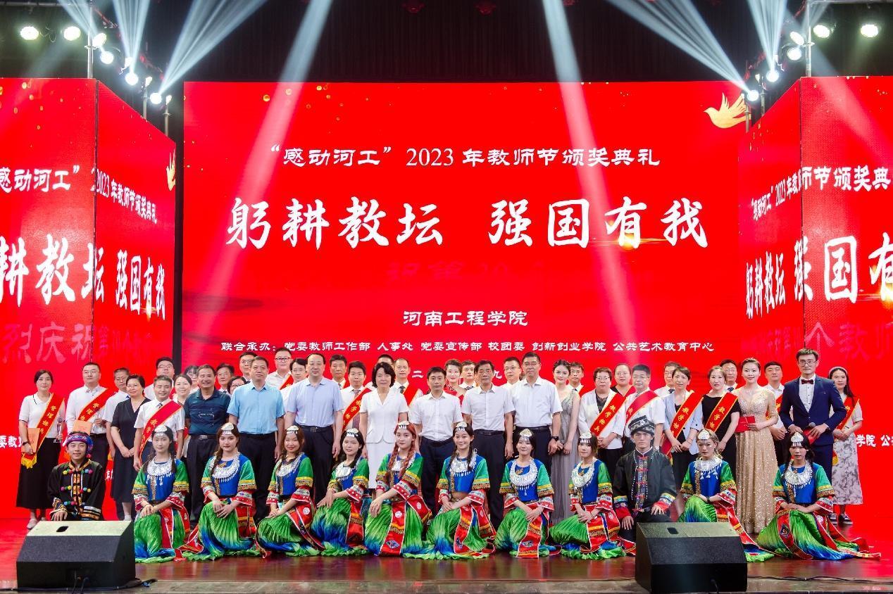 春风化雨,泽瑞桃李。在第三十九个教师节来临之际,为进一步发挥先锋模范的引领示范作用,充分展现“河工”教师队伍风采,9月8日下午,河南工程学院以“躬耕教坛 强国有我”为主题在西区创新创业中心礼堂举行“感动河工”2023年教师节颁奖典礼。校领导刘永涛、李利英、袁静波、王永恒、王生交、李德耀、张瑞林、焦有宙出席典礼,特聘教授杨义先、全体中层干部、获奖人员、离退休老教师与师生代表等500余人参加典礼。