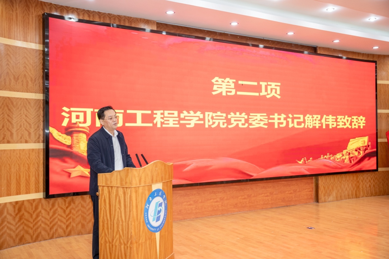解伟致辞中向此次集邮展览开幕表示祝贺,向河南省中华文化促进会、河南省老干部集邮协会等对学校的大力支持表示感谢。他指出,中原大地是文明之源,更是红色热土,杨靖宇、彭雪枫、吉鸿昌等都是出自河南的英雄烈士,而且杨靖宇将军是学校的杰出校友。此次展览既是一场艺术鉴赏,又是一堂爱国主义教育课、一堂鲜活的思政大课。他强调,要以此次邮展为契机,落实立德树人根本任务,挖掘运用红色资源,传承红色基因,更续红色血脉,在缅怀先烈、铭记历史中汲取精神力量、坚定前行意志,发扬革命优良传统,践行社会主义核心价值观,以昂扬斗志有力推进学校高质量发展,为奋力谱写中原大地推进中国式现代化新篇章贡献河工力量。
