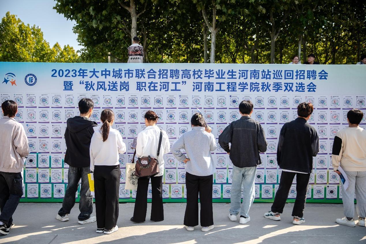 10月14日,河南工程学院联合省人才交流中心在龙湖校区举办“2023年全国大中城市巡回招聘河南站郑州专场暨‘秋风送岗 职在河工’河南工程学院秋季双选会”,本次双选会由全国人才交流中心、省人力资源和社会保障厅主办,省人才交流中心和河南工程学院承办。来自全国各地的300余家用人单位来校“招贤纳士”,提供就业岗位共计3.2万余个。校党委书记刘永涛、副校长王生交、省人才交流中心主任冯以干在相关部门负责人的陪同下到双选会现场调研指导。