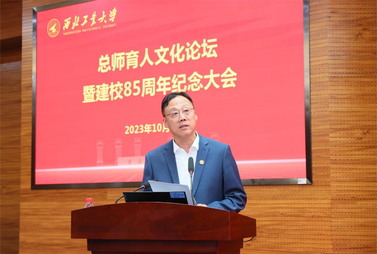 杨伟在主题演讲中表示,西工大是开启自己航空梦的地方,更是锤炼自身品格的地方。85年春华秋实,85载风雨兼程,值此母校85岁华诞之际,他谈了三点体会:一是“为党育人、为国育才”是“西工大现象”的根基。85年来,西工大与国家和民族的命运同呼吸、共患难、共发展,始终以“低调务实不张扬,埋头苦干敢担当”的实际行动育人育才、创新发展,为国家国防事业作出了重要贡献。二是“既注重理论,又注重应用”是“西工大现象”的根源。学校“工科为本、三航当家、信息赋能、融合强校”的科研发展思路,将更加培养和激励一代又一代工大学子理用结合、务实创新。三是“既传授知识、更培养方法”是“西工大现象”的根本。学校在传授知识的同时,更培养了学习新知识、应用新知识的习惯,培养出一批视野宽、基础厚、专业精、思维新、创新强的高层次人才。他建议,学校要继续有组织地推进与“三航”领域院所开展深度合作,要大力推进国家卓越工程师学院的人才试点合作。