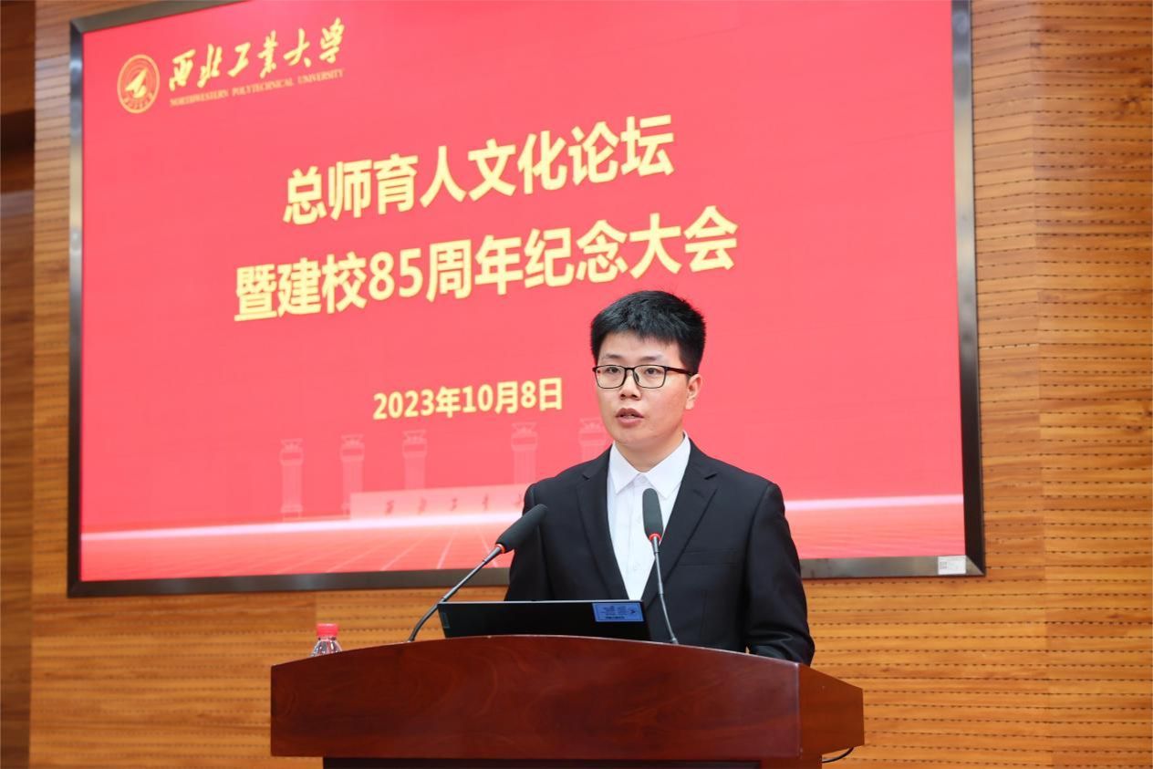 学生代表、航天学院参研“飞天一号”博士生高屹在发言中说,在学校80周年校庆时,三位总师的同台朗诵令他印象深刻,总师们的成长经历和奋斗历程激发了他对祖国国防事业的热爱和报效祖国的情怀。在参与“飞天一号”项目的研制中,他真切地了解到国家在航天领域急需解决的问题,并在系统的科研实践训练中发现真问题、解决真问题,创新思维和能力得到了不断提高。未来,他将继续积极投身于祖国的航天事业,将论文写在祖国大地上、写在大国重器上,努力成为“总师育人文化”的传承者和“西工大现象”新的书写者。