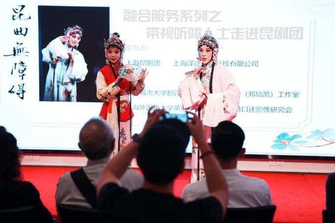 昆曲,自明代中叶以来独领中国剧坛近400年,是中国古老的戏曲声腔、剧种,,在2001年被联合国教科文组织列为「人类口头和非物质遗产代表作」,是世界非遗名录第一批19中的首项。香港城市大学翻译及语言学系鄢秀教授在服务视障群体的口述影像研究方面有着深厚的造诣,同时也是一位昆曲爱好者。2年前经鄢秀教授热心牵线,上海译迩信息科技有限公司创始人韩冬雪结识上海昆剧团党总支书记张咏亮,期望促成一次昆剧触达到视听障碍群体的特别活动。经多家组织方协力筹备,终于呈现这场融合多维度沈浸式无障碍昆曲互动体验、演出欣赏的特别活动,并辅以专业口述讲解和手语翻译,让在场的视听障碍群体得以跨越感官界限,领略昆曲艺术之美,参与非遗文化传承。